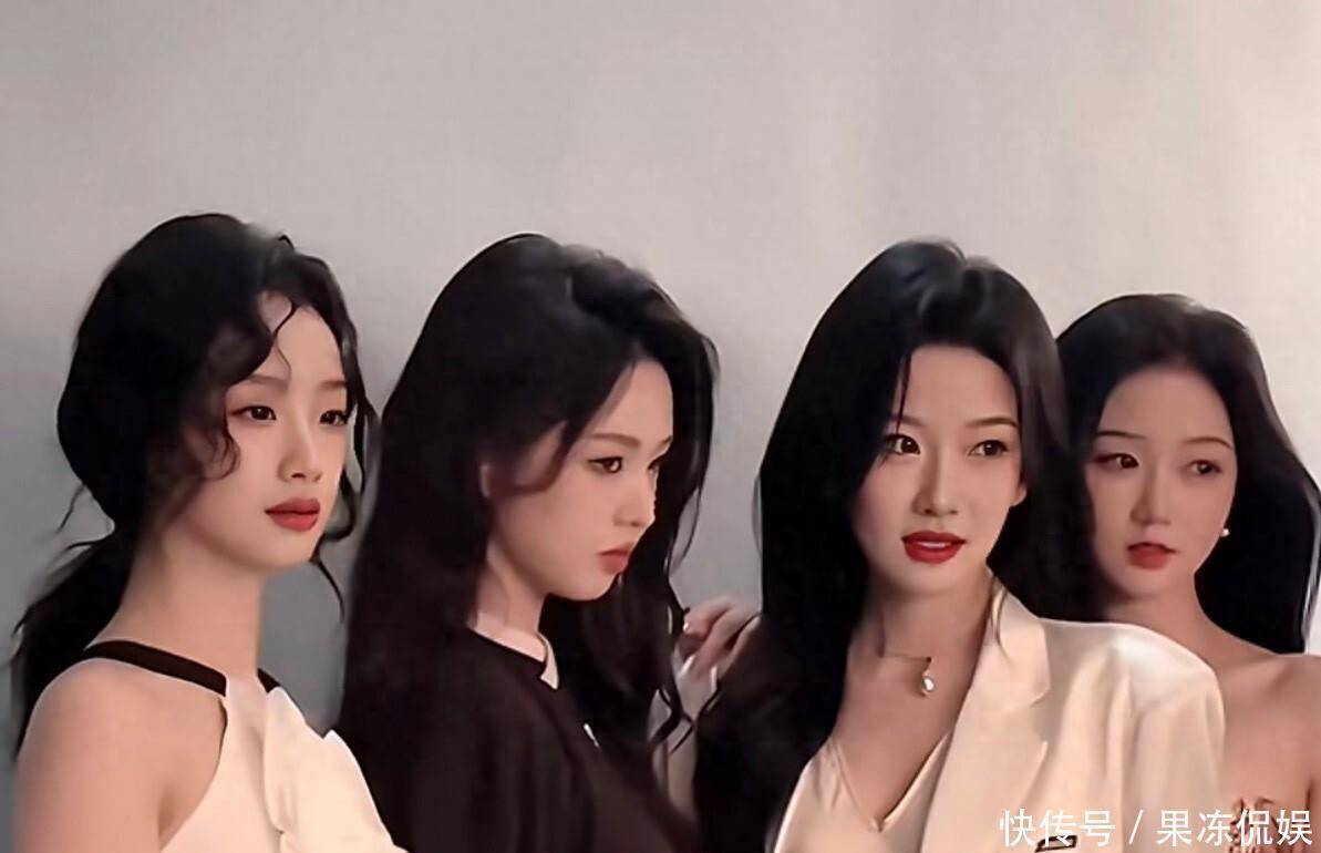 这四人同框的地点,疑似在一处摄影棚。 背景是简约的纯色幕布,旁边摆放着专业的灯光设备。 她们四人的穿着风格截然不同,王小亿一身利落西装裙,李柯以是甜美连衣裙,韩雨彤穿着干练衬衫,岳雨婷则是时尚辣妹装。 虽然风格不同,但每个人的状态都无可挑剔。 这张照片的点赞量在发布后两小时内就突破了百万。王小亿是科班出身的典型代表。 她毕业于武汉设计工程学院成龙影视传媒学院。 2025年,她主演的《云渺》系列短剧,全网累计播放量突破了百亿大关。 这个系列让她一夜之间跻身顶流。 年出道至今,她已经拍了超过六十部短剧,其中十部以上都成了爆款。 在合影里,她的大波浪卷发和红唇妆容,显得格外有气场。